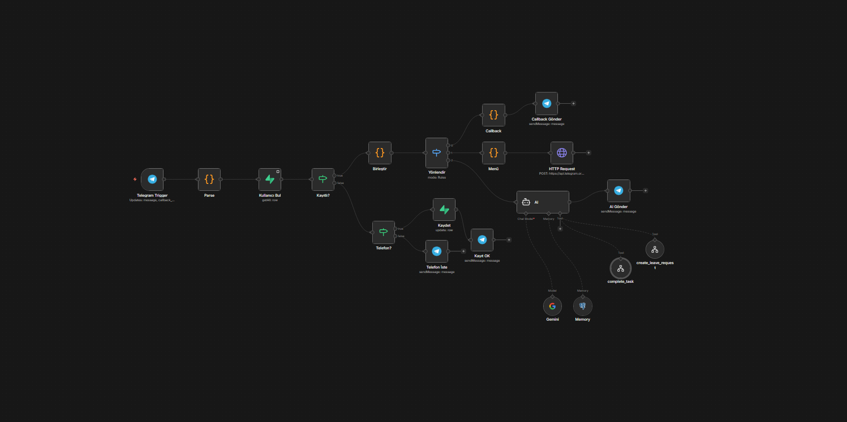 İzin talepleri ve bilgilendirmeler N8N altyapısı ile otomatik yönetilir. İnsan hatası sıfıra iner.
