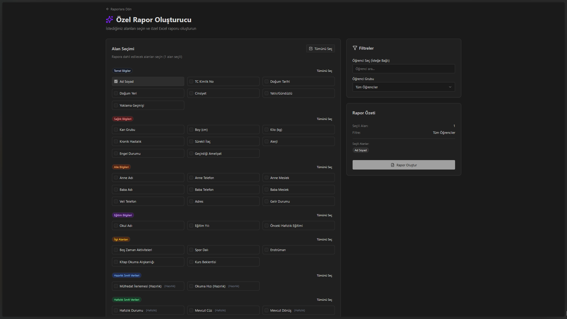Notlar, devamsızlık, disiplin geçmişi ve sağlık bilgileri... Öğrencinin tüm akademik yaşam döngüsü tek bir profil kartında.